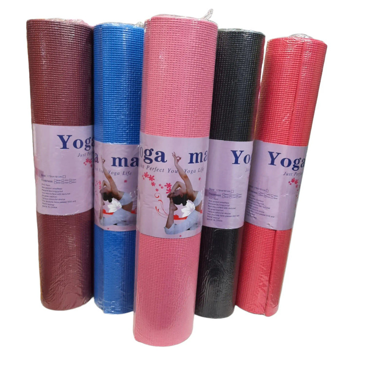 مت یوگا پی وی سی pvc ضخامت ۶ میلی متر ابعاد طول ۱۸۰ سانتی متر عرض ۶۰ سانتی متر بدون کاور رنگ بندی آبی،قرمز،مشکی،زرشکی،صورتی مناسب ورزش،یوگا،تناسب اندام