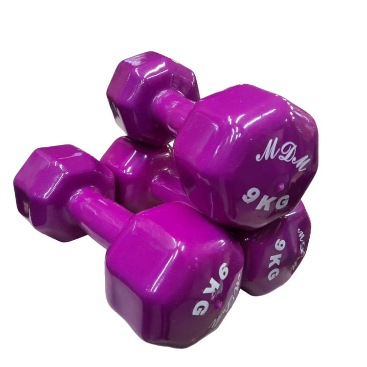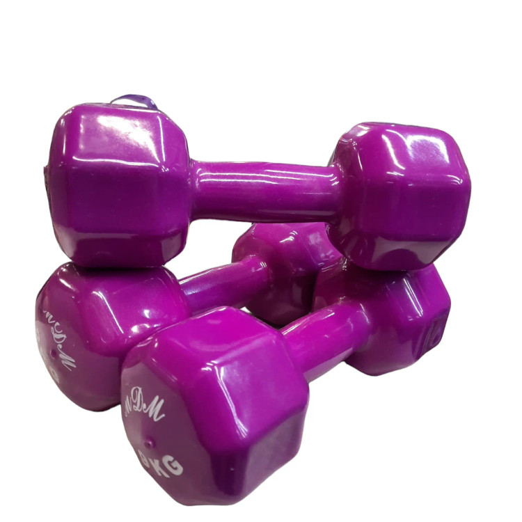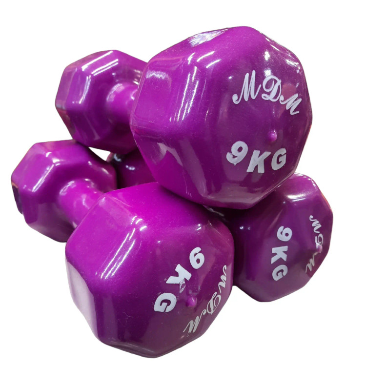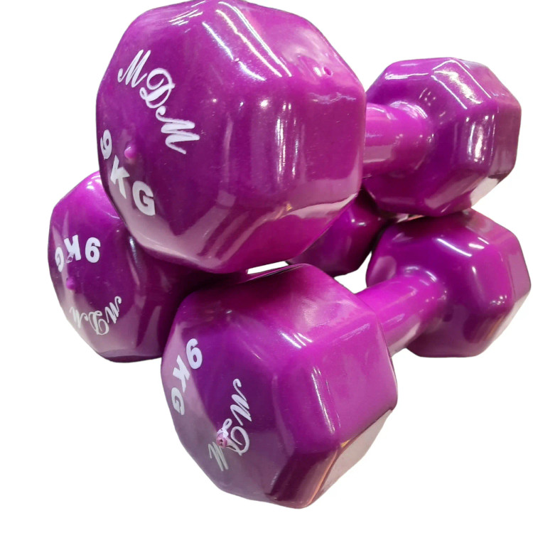 دمبل روکش دار ایروبیک بانوان ۹ کیلویی جنس چدنی روکش دار رنگ بنفش مناسب رشته های فیتنس،پیلاتس،بدنسازی،ایروبیک