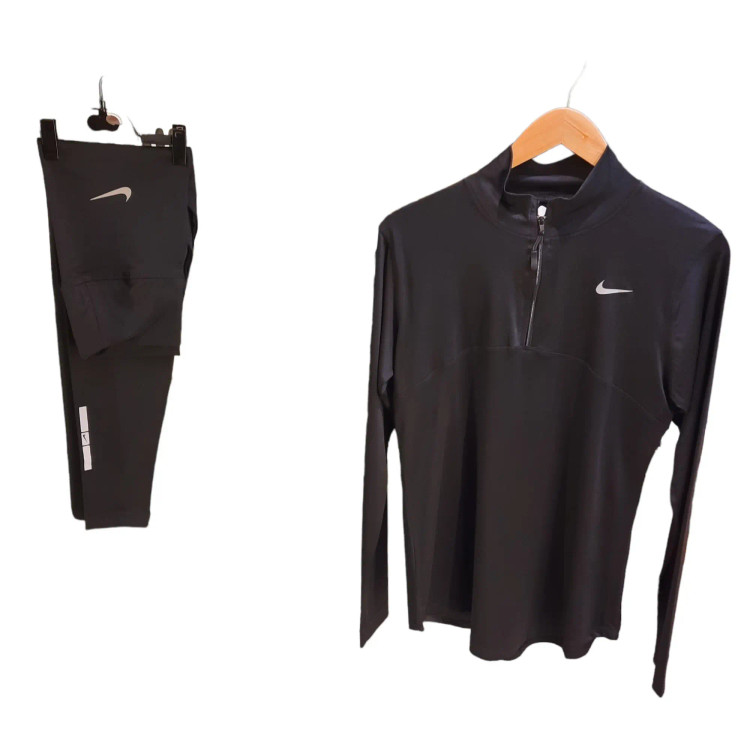 ست تیشرت نیم زیپ لگ ورزشی زنانه نایک مشکی