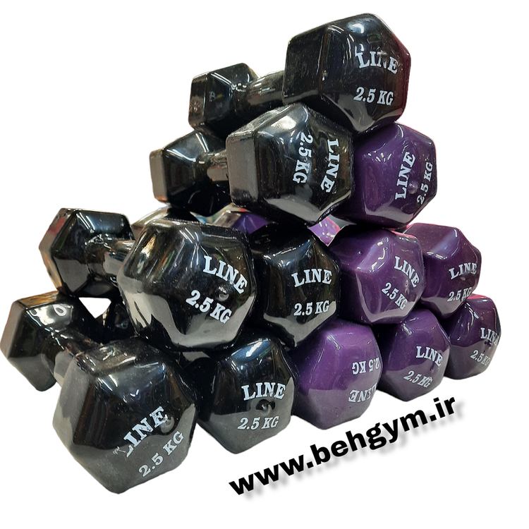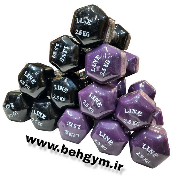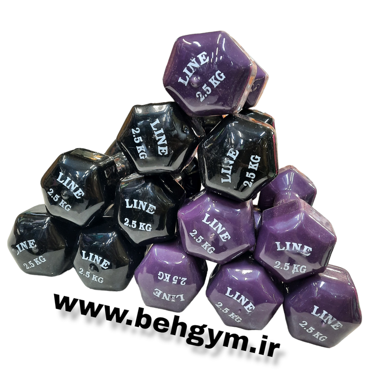 دمبل ۲.۵ کیلویی روکش دار رنگی ایروبیک بانوان رنگ بنفش جنس چدنی روکش دار مناسب رشته های ایروبیک،پیلاتس،فیتنس