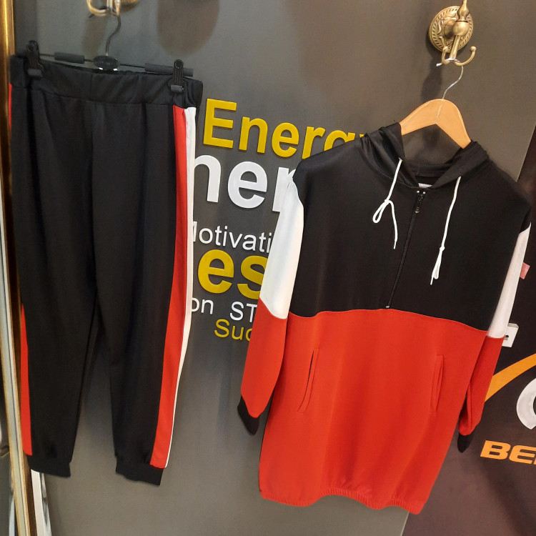 ست هودی شلوار ورزشی زنانه فری سایز مناسب سایز ۴۰،۴۲ پارچه غواصی قد هودی ۸۵ سانتی متر قد شلوار ۹۵ سانتی متر شلوار دمپا مچی