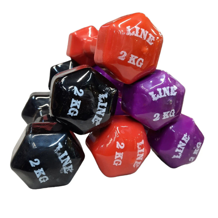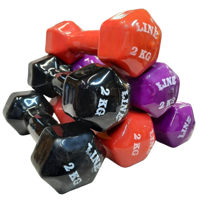 دمبل ۲ کیلویی روکش دار رنگ ایروبیک بانوان در ۳ رنگ مشکی،بنفش،قرمز مناسب ورزش در منزل جنس چدنی روکش دار