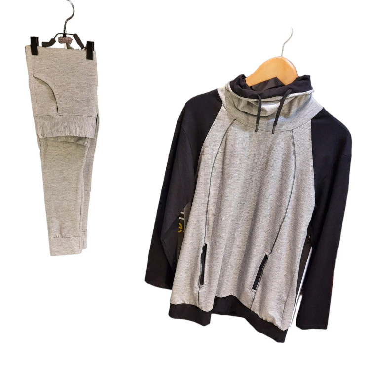 ست هودی شلوار ورزشی دخترانه جنس نخی فری سایز مناسب سایز ۴۰،۴۲ تک رنگ طوسی