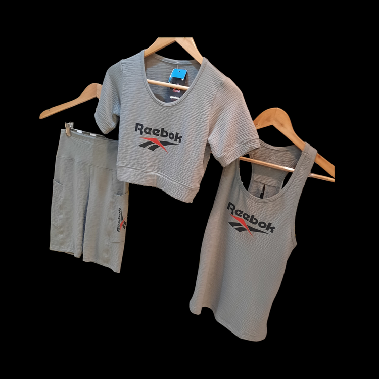ست 3سه تکه کاور تاپ نیم تنه شلوارک ورزشی زنانه