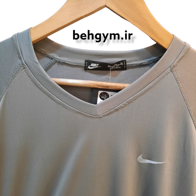 تیشرت ورزشی زنانه طوسی طرح نایک یقه هفت