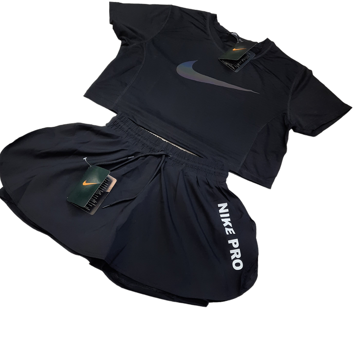 ست دامن تنیس کراپ ورزشی زنانه طرح نایک رنگ مشکی