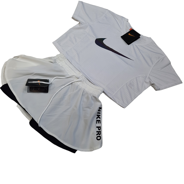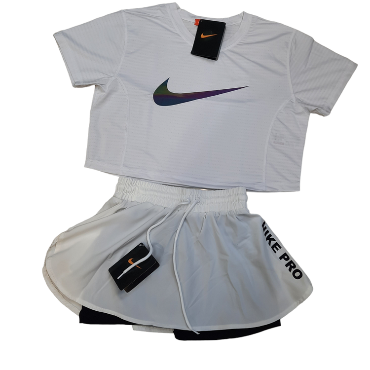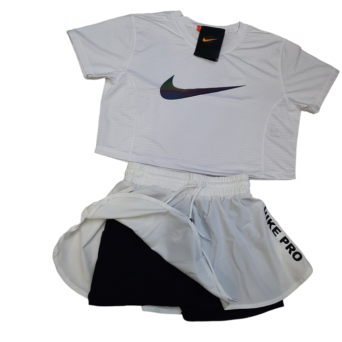 ست دامن تنیس کراپ ورزشی زنانه طرح نایک سفید
