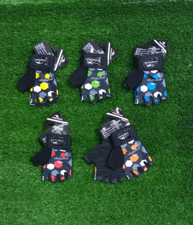 دستکش نیم انگشتی ورزشی زنانه ماراتن مچبند دار طرح شش ضلعی
