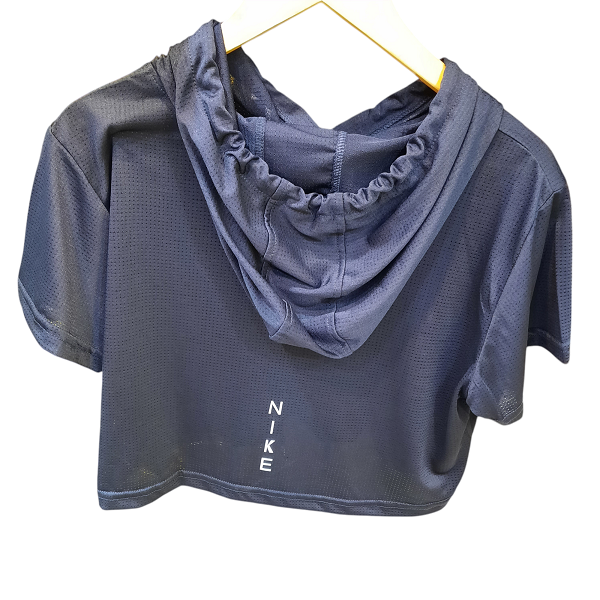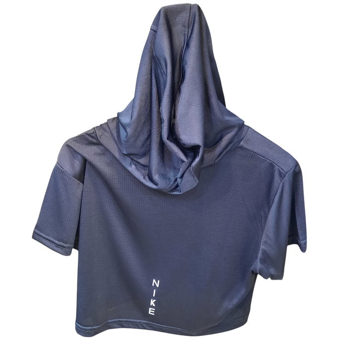 کراپ ورزشی کلاه دار نایک مدل سوزنی سرمه ای