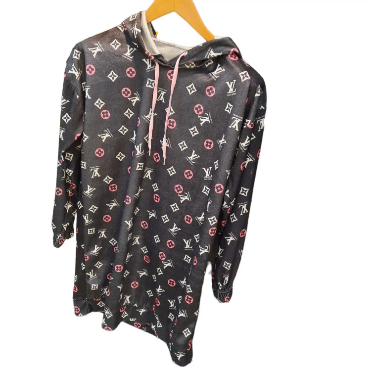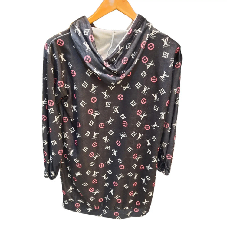 هودی ورزشی اسپورت زنانه لانگ طرحدار مخملی