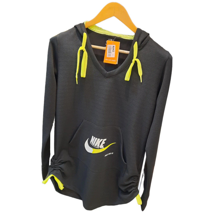 هودی ورزشی زنانه سایز لارج مناسب ۳۸، ۴۰ بغل گت دار رنگ نوک مدادی قد ۷۷ سانتی متر